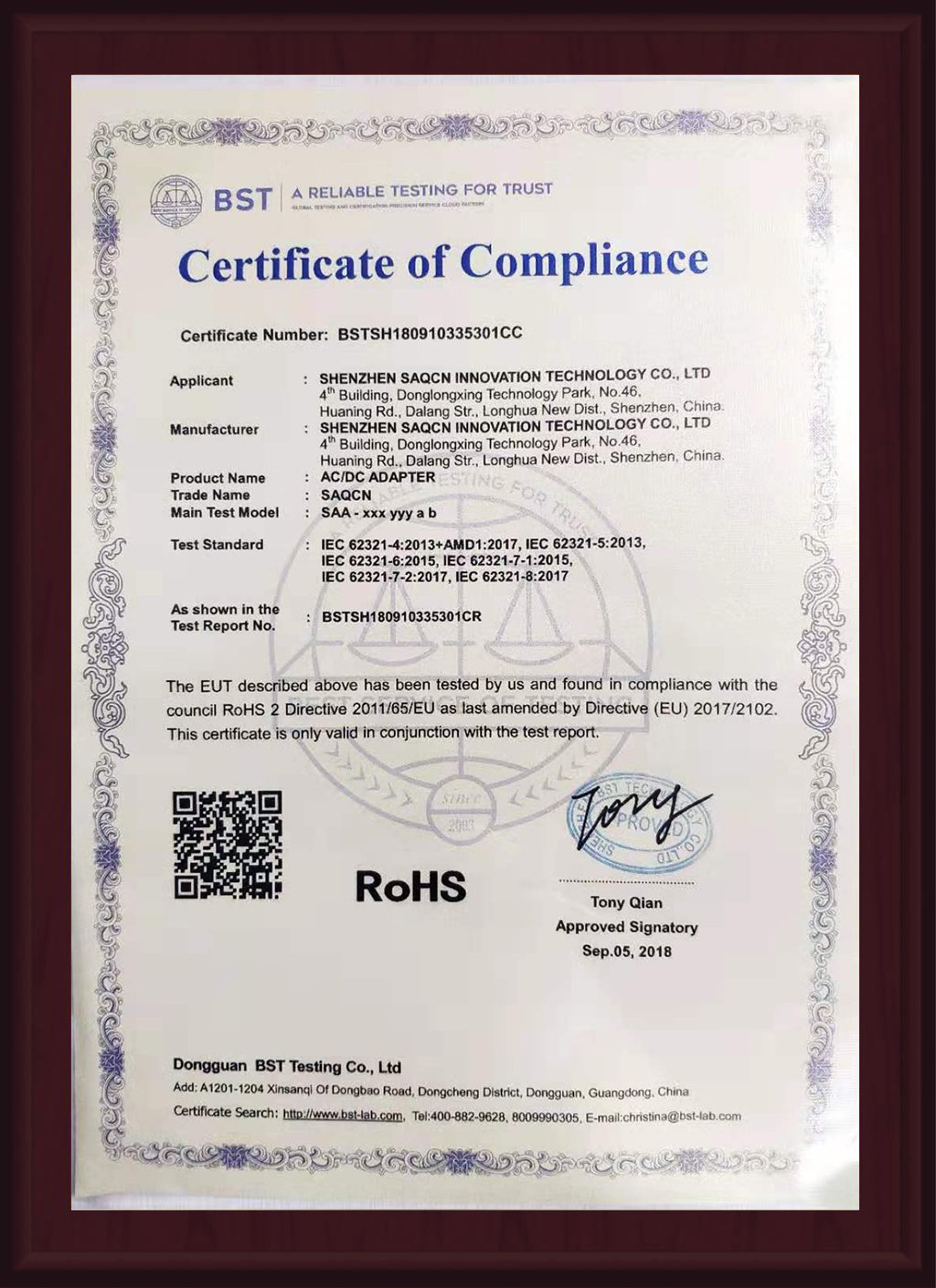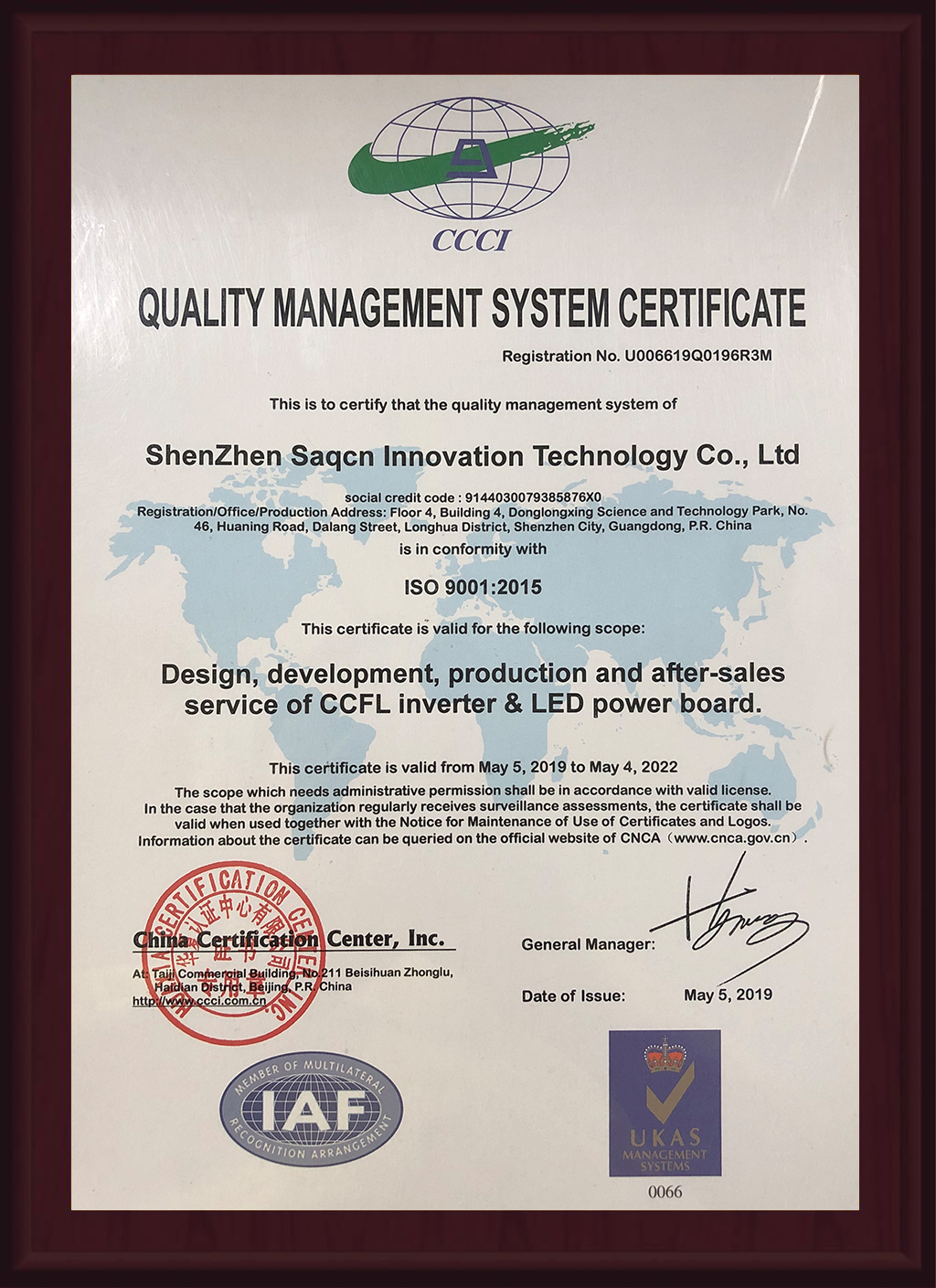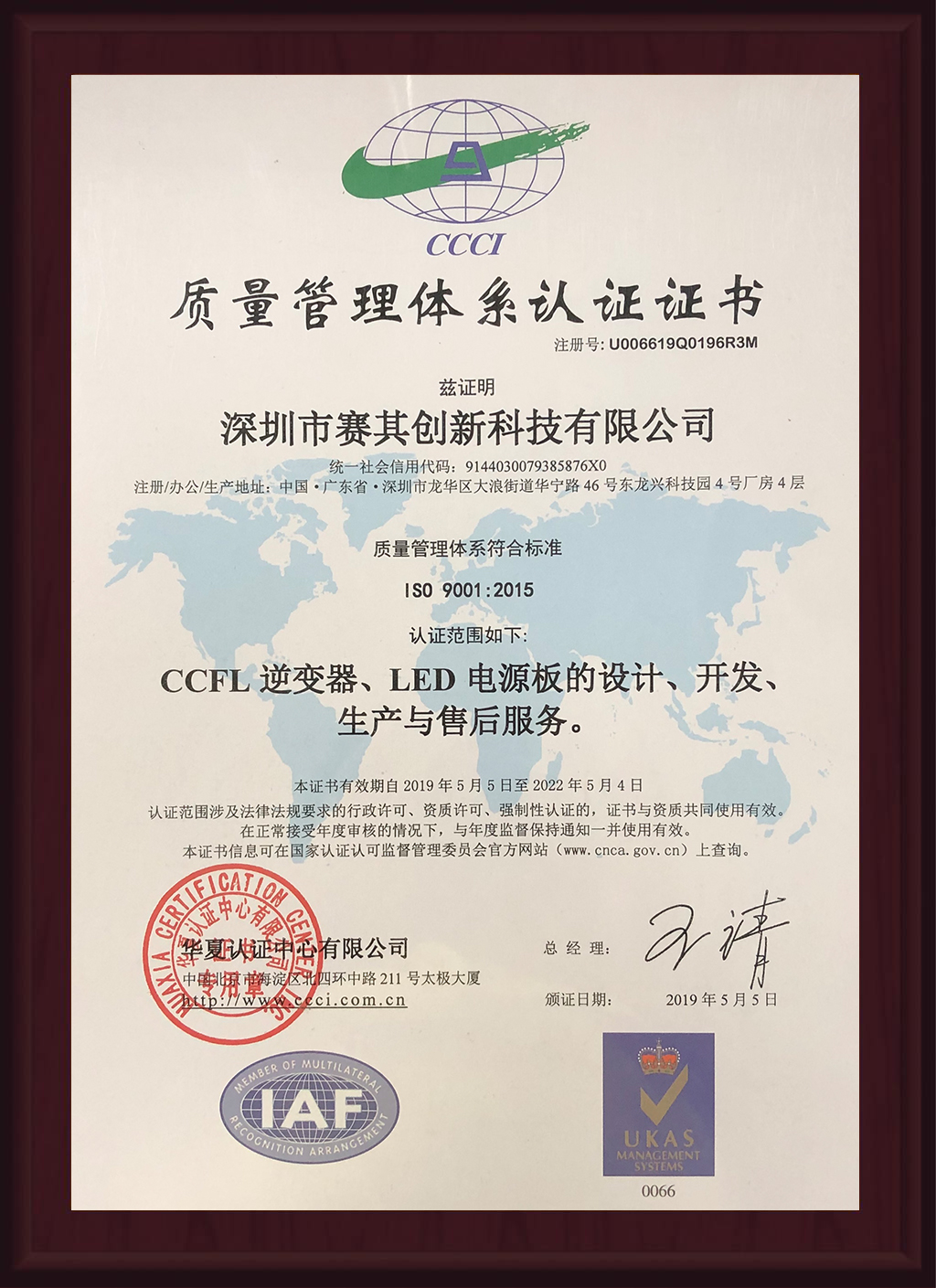 质量管理体系认证证书